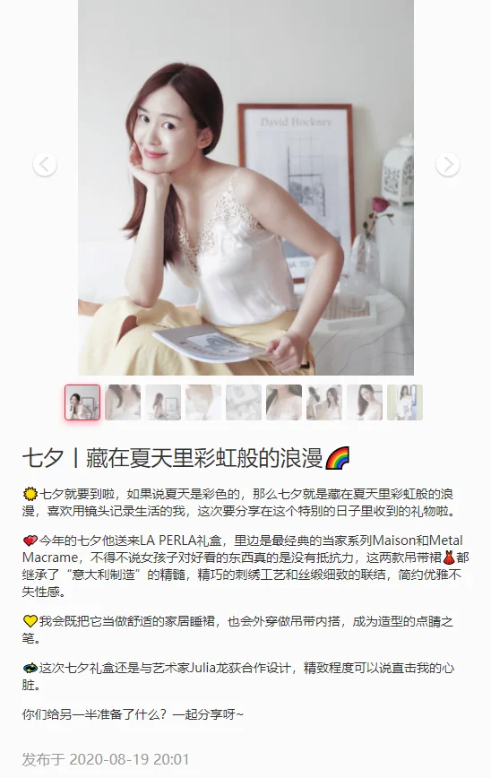 In 2020, luxury underwear brand La Perla took an unusual approach by featuring illustrations by Julia Long (龙荻 Long Di), a regular collaborator with fashion brands, and included them on cards in special edition packaging for its Chinese Valentine’s Day offerings. Miss Long’s hand crafted style and the retro scenes set in a dream-like China set the mood and heightened the brand image through a connection with art.