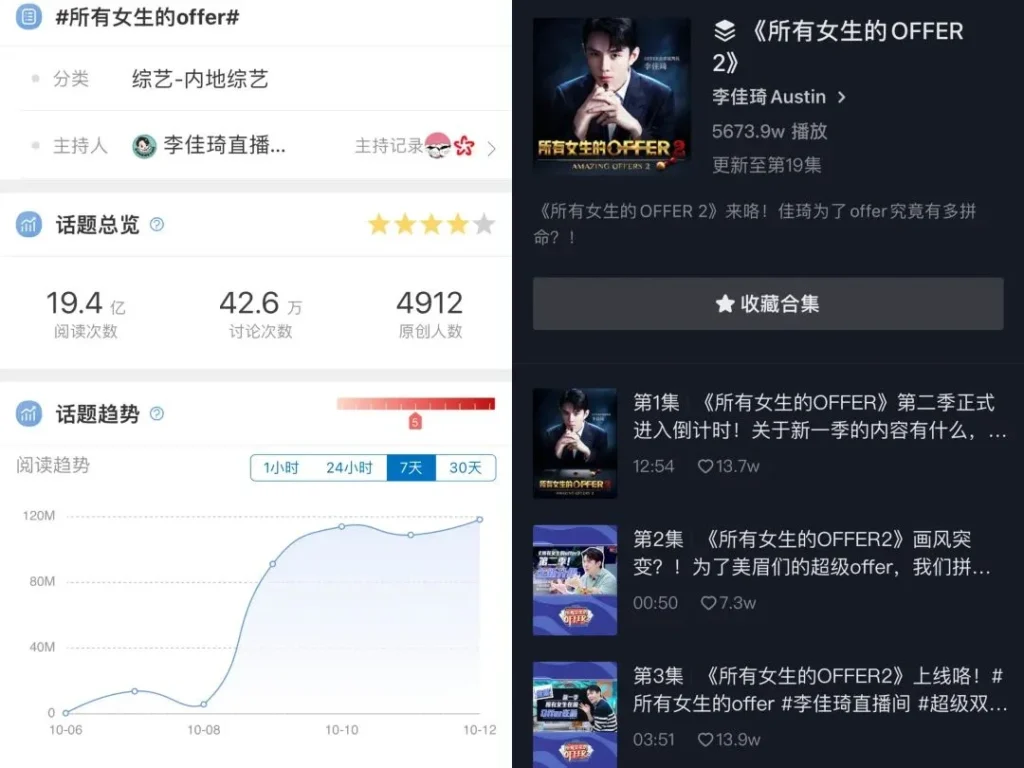 Top streamers like Autin Li, also referred to as ‘lipstick king’ for selling record-breaking 15000 lipsticks within 5 mins, created 460 million views with a stunning RMB 21.5 billion GMV in one show for 2022 double 11. To promote personal brand influence, Austin Li explored hosting the TV show All Girls’ Offers 2, extending scenarios of live streaming to reach people under specific products and build intimate relationships. Such a campaign initiative attracted views of over 1.94 billion on Weibo and directly contributed to Austin’s live streaming GMV of RMB 10.65 billion of the presell session of 2022 Double 11.