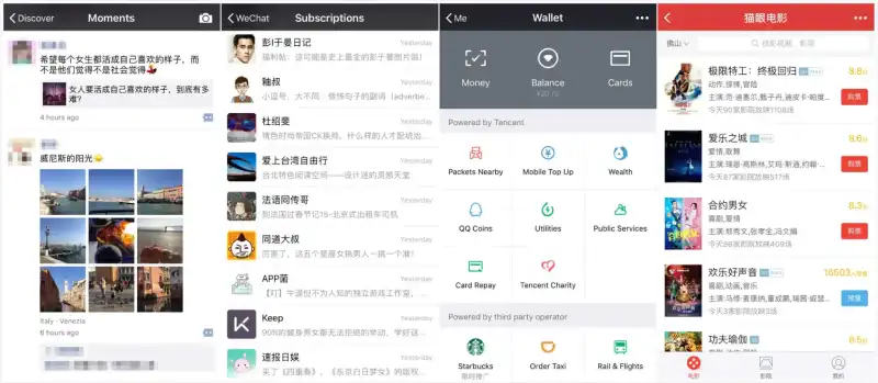 WeChat, also known as Weixin (微信) in Chinese, started as a mobile instant messaging app but has grown to include features such as a Moments page – akin to a Facebook Wall where users can update their status by posting text, photos and videos or share WeChat articles – WeChat official accounts, WeChat Pay and the newly-released Mini Program platform.