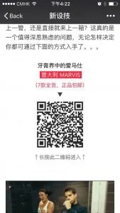 A WeChat KOL account published an article to introduce and promote a toothpaste brand. Users can extract the QR Code and go to the brand account or online store.