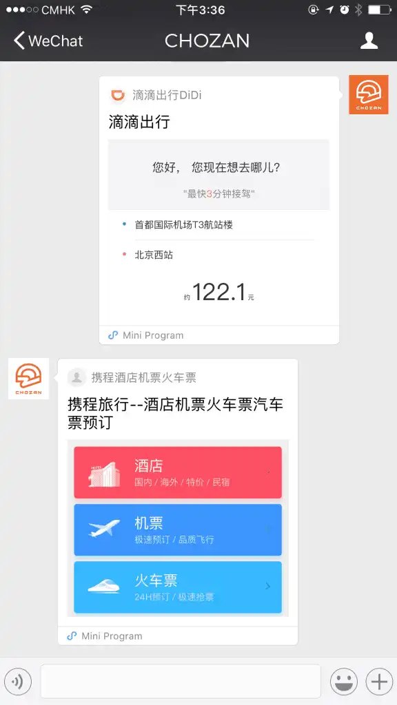 Ctrip and Qunar are two online travel agencies. Users can book hotels, air tickets, train tickets and bus tickets through the mini program.